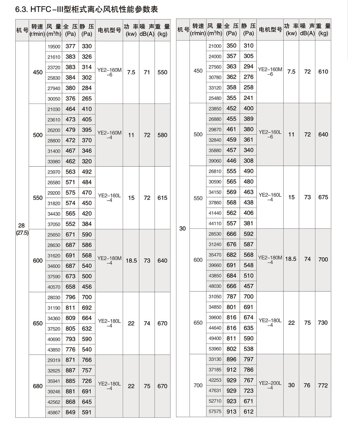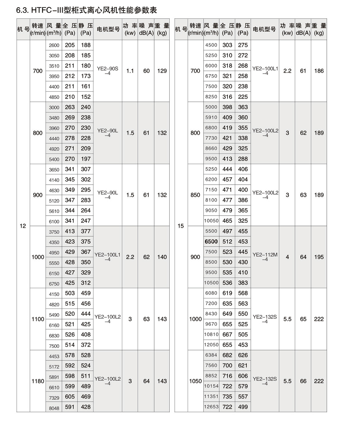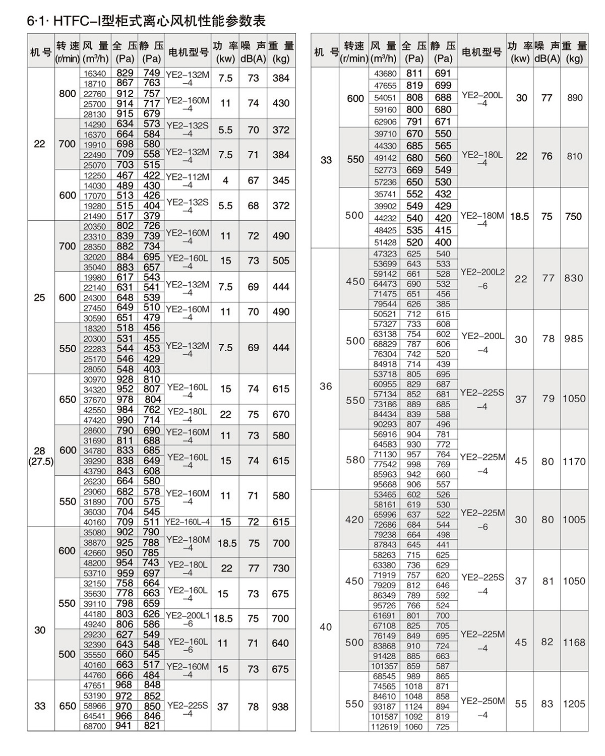 1.2.風(fēng)機按機號分為9-40十三種規格系列風(fēng)量范圍從1650~112600m3/h,全壓范圍從180~1200Pa。HTFC型柜式離心風(fēng)機經(jīng)不斷的改進(jìn)和開(kāi)發(fā),現可分為Ⅰ、Ⅱ、Ⅲ、Ⅳ
